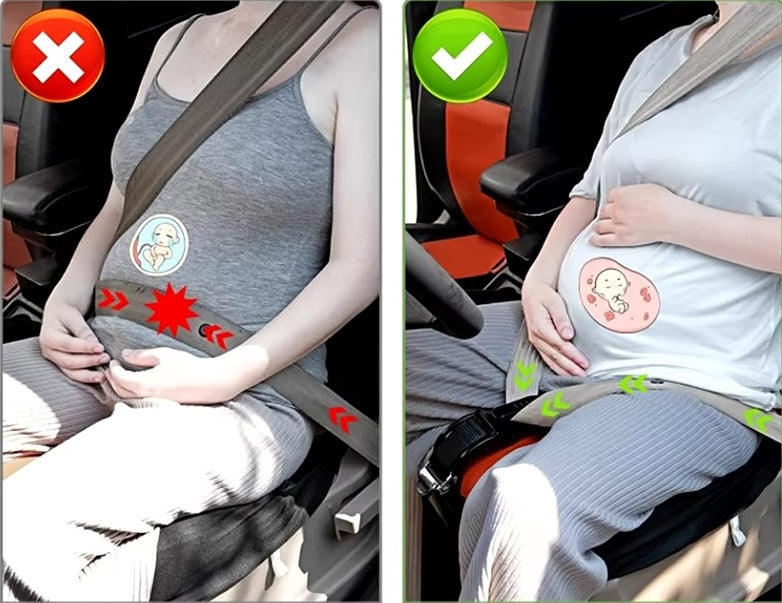 Regular seatbelts aren't always ideal for pregnant women. In a sudden stop or crash, the pressure on the belly can put the baby at risk.